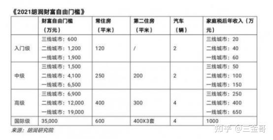2021年3月31日,胡润研究院发布了《2021胡润财富自由门槛》