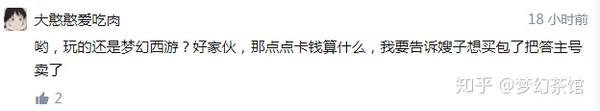 哈哈哈我还好啦,毕竟玩梦幻也能赚点零花钱,每次拿出一些给老爸买新鱼竿,拿点给老妈继续打麻将,给媳妇儿续费视频网站会员。