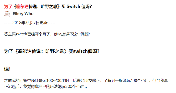 我之前准备入手《塞尔达传说》的时候,特地上知乎搜了下这个游戏的评价,看见有人说“你不应该想为了玩塞尔达买一台switch值不值,你应该想的是2500买一个塞尔达还送一台switch。”